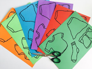 5. יש לגזור את הבגדים אבל לא צריך לגזור בדיוק לפי הקווים אלא קצת יותר רחוק מהן, כדי שיראו את הקו התוחם והציור יראה יפה.